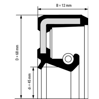 The shaft seal W-BASL-45-68-12 reliably seals the shaft and the adjacent construction. The recessed tension spring ensures a tight fit.