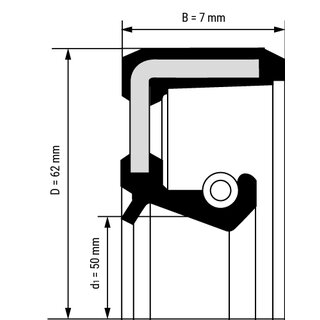 The shaft seal W-BASL-50-62-7 reliably seals the shaft and the adjacent construction. The recessed tension spring ensures a tight fit.