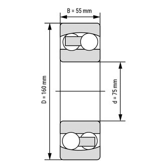 With the swiveling inner ring, the self aligning ball bearing 2315 offers excellent alignment error compensation. With the two rings of barrel-shaped rollers, it can absorb high radial forces. Main dimensions according to DIN 630.