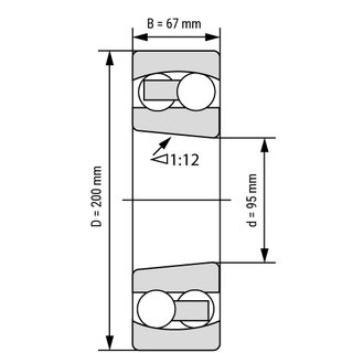 Self-Aligning Ball Bearing 2319 K (tapered) 95x200x67 mm