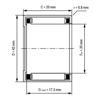 The needle sleeve BK3520 is a small needle bearing without inner ring and can be placed directly on the shaft, preferably a shaft end. It is suitable for absorbing high radial forces in the smallest space. Main dimensions according to DIN 618-1.