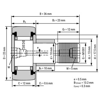 Stud Type Track Roller KRE22 PP 2HS 22x13x36 mm