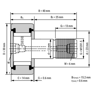 Stud Type Track Roller KRV30 X PP 2HS 30x12x40 mm