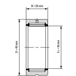 The needle bearing NK30/20 has thin cylinders as rolling elements and can absorb high radial forces. Since it has no inner ring, it can be placed directly on the shaft and is suitable for a particularly space-saving installation.